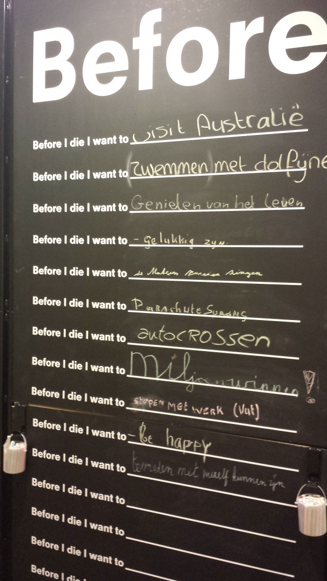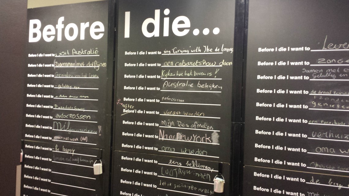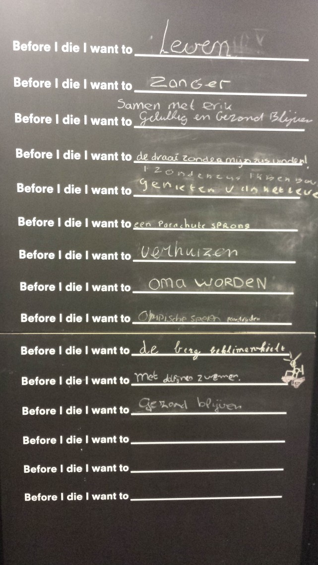 Hieronder een voorbeeld van de “Before I Die Wall” met een selectie van de wensen.
